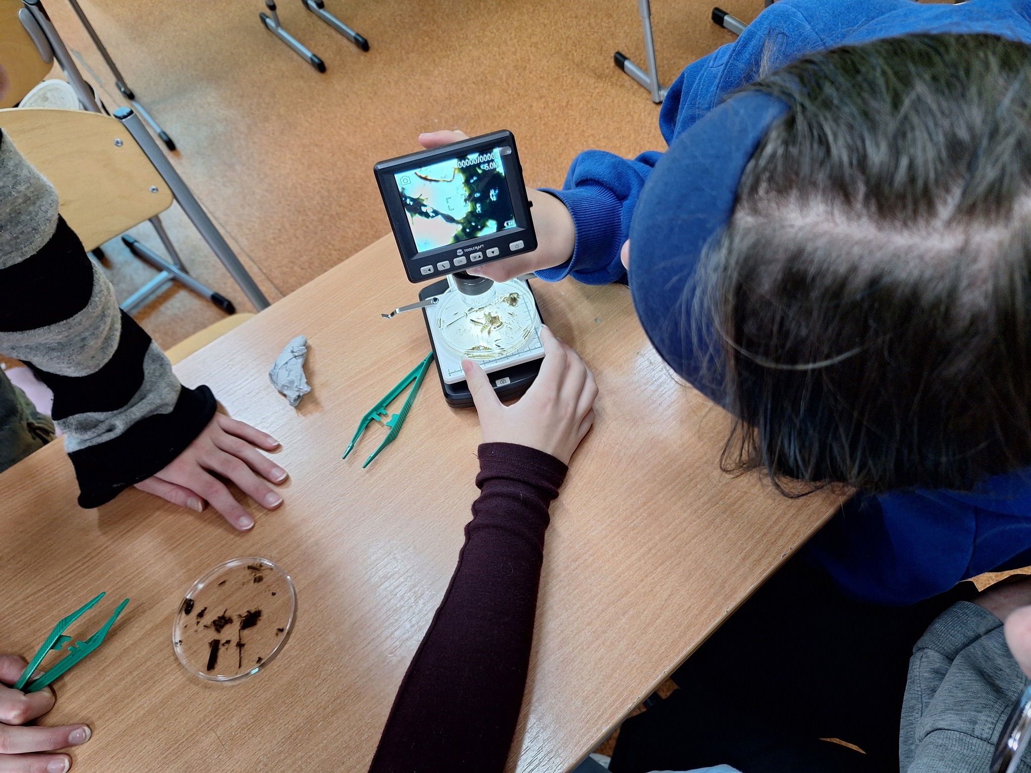 Razem z pracownikami IMGW we Wrocławiu prowadziliśmy obserwacje mikroskopowe organizmów i oznaczaliśmy je z klucza, poznając ich nazwy i rolę w ekosystemie.