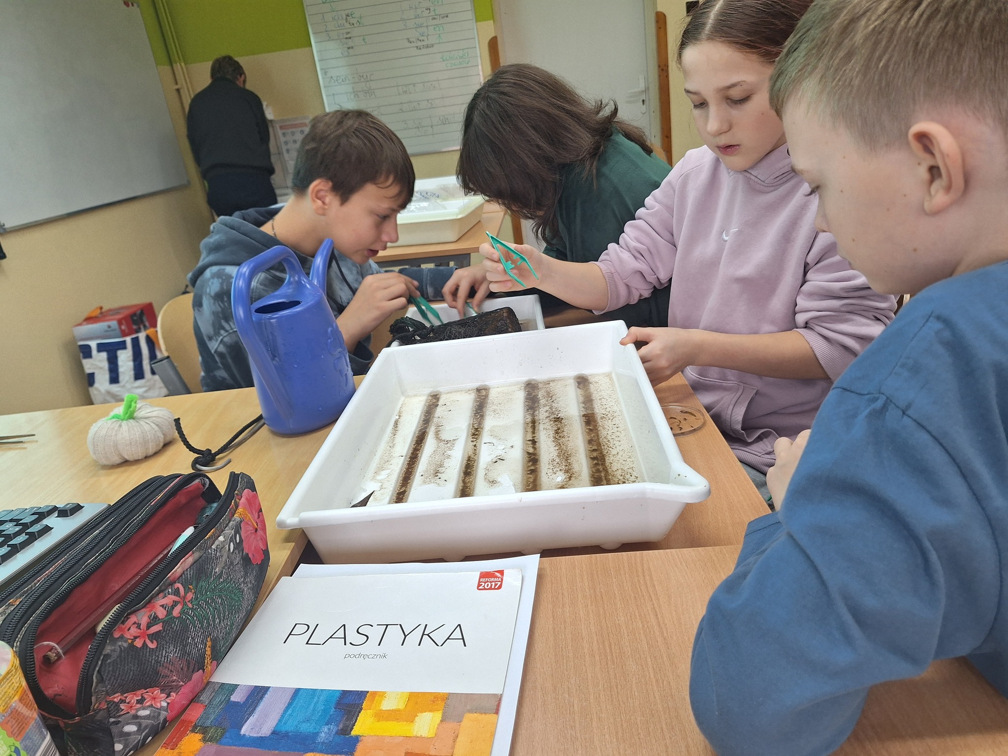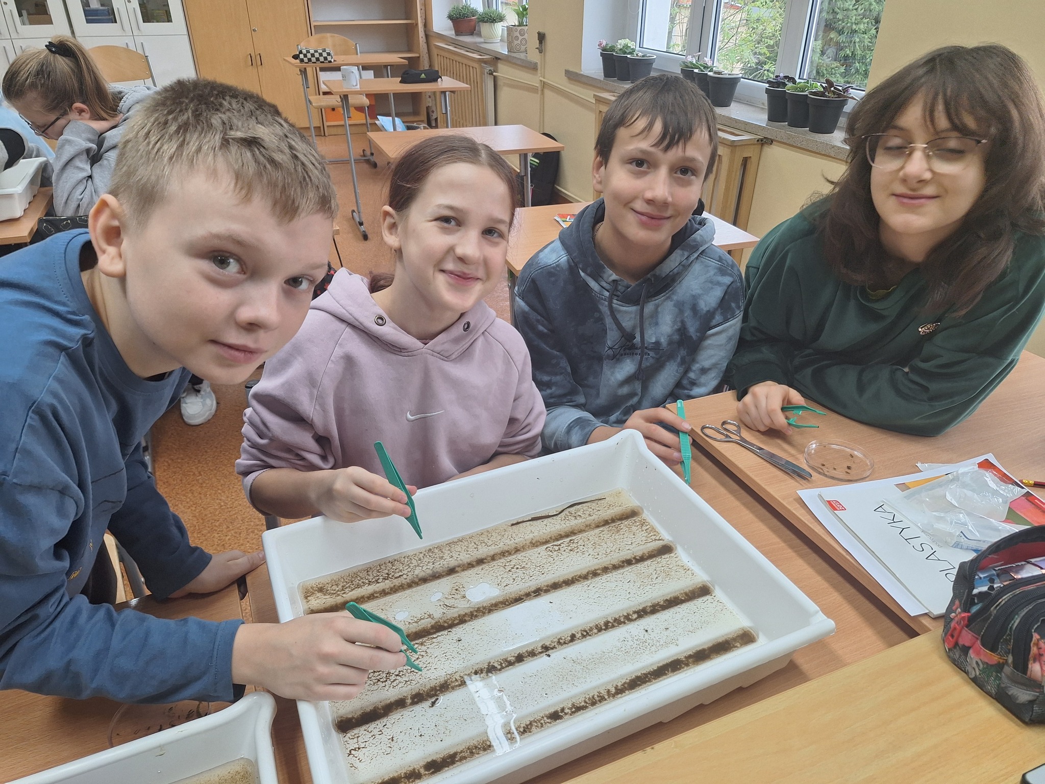 W kwietniu uczniowie klasy 7 wspólnie z ekspertami z Instytutu Meteorologii i Gospodarki Wodnej we Wrocławiu założyli nad rzeką Czermnicą, tuż przy naszej szkole, własne farmy wodne!